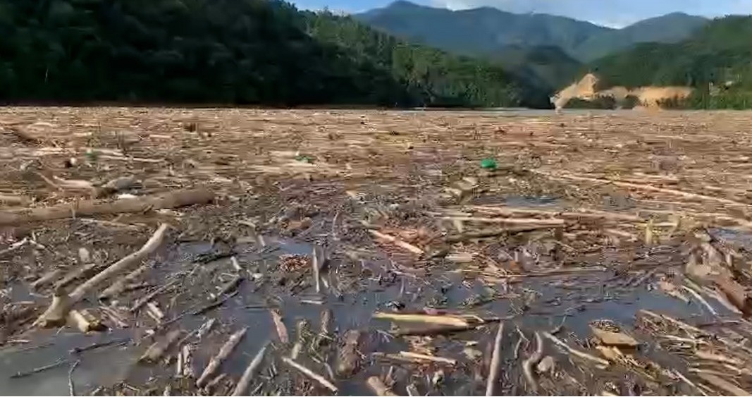 Lượng rác khổng lồ tràn về lòng hồ Thủy điện Bản Vẽ sau lũ