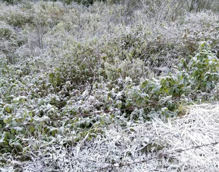Hai ngày qua, nhiệt độ tại xã Na Ngoi (Nghệ An) giảm xuống dưới 0°C, khiến băng giá xuất hiện dày đặc trên cây cối, thảm cỏ ở địa bàn biên giới.