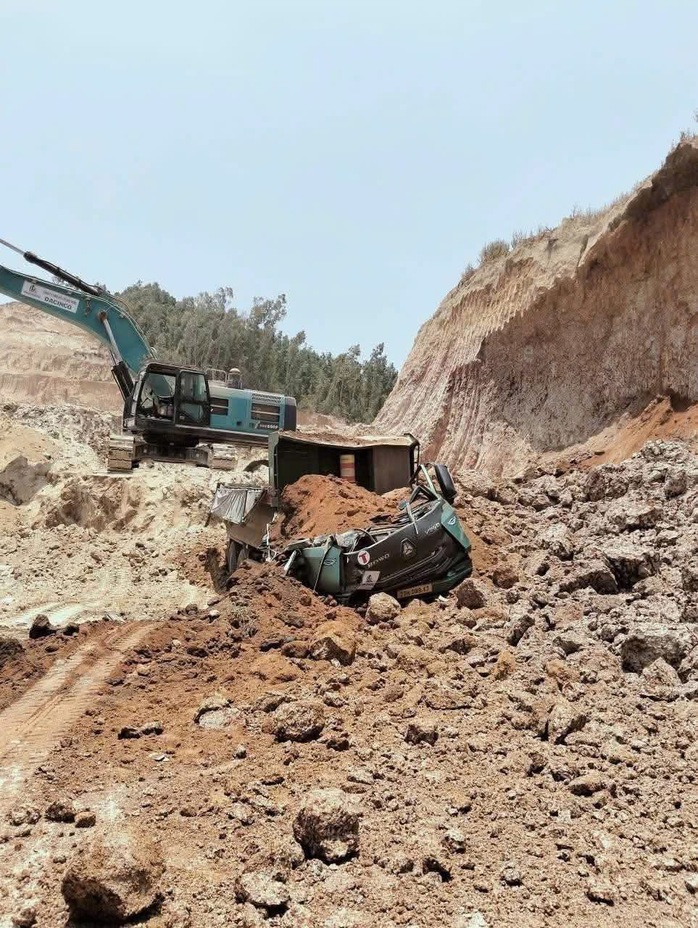 Trong lúc dừng xe chờ lấy đất tại mỏ phục vụ công trình, một tài xế xe ben bất ngờ bị đất đá sạt lở vùi lấp, tử vong.