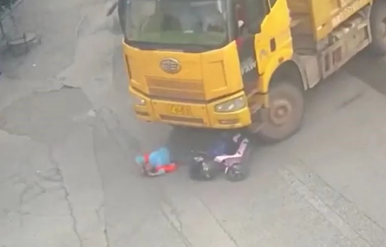 Bị xe tải đang rẽ phải tông ngã rồi cuốn vào gầm, một người phụ nữ đi xe tay ga tại Ngọc Khuê, tỉnh Vân Nam, Trung Quốc, đã thoát khỏi "lưỡi hái tử thần" trong tình huống khiến nhiều người thót tim. Vụ việc đồng thời gióng lên cảnh báo về hiểm họa điểm mù xe tải.