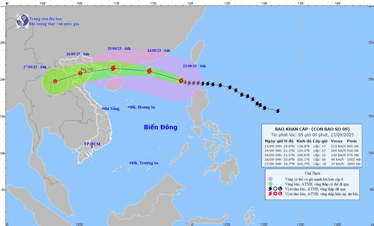 Cơ quan khí tượng cảnh báo, siêu bão số 9 đang hoạt động trên khu vực phía Đông Bắc Biển Đông với sức gió giật trên cấp 17. Dự báo từ ngày 24-26/9, các tỉnh Bắc Bộ và Bắc Trung Bộ hứng chịu gió mạnh, mưa rất to, nguy cơ ngập úng, lũ quét và sạt lở đất.