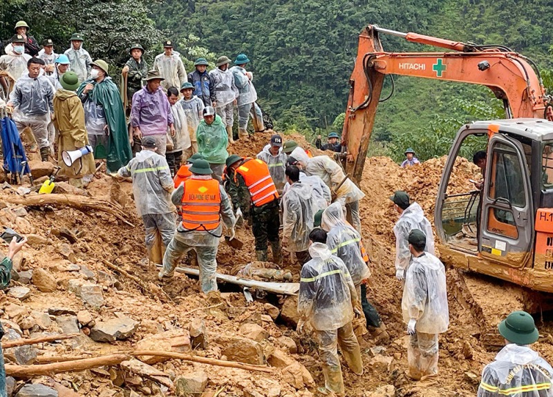 Lực lượng chức năng đang khẩn trương tìm kiếm các nạn nhân còn bị đất đá vùi lấp khi thi công dự án thủy điện Tả Páo Hồ 1A.