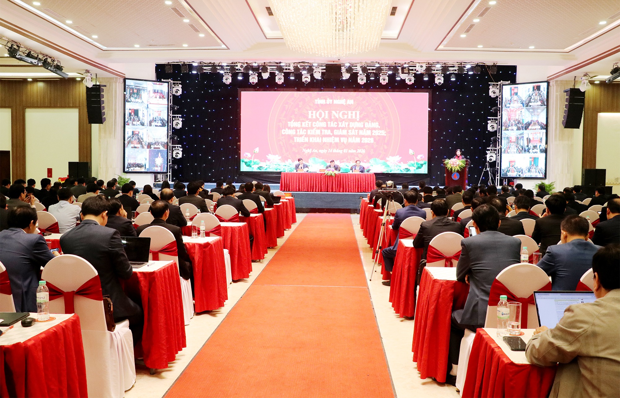 Sáng nay (14/01/2026), Tỉnh ủy tổ chức Hội nghị tổng kết công tác xây dựng Đảng; công tác kiểm tra, giám sát năm 2025 và triển khai nhiệm vụ năm 2026. Các đồng chí: Bí thư Tỉnh ủy Nguyễn Khắc Thận; Phó Bí thư Thường trực Tỉnh ủy, Chủ tịch HĐND tỉnh Hoàng Nghĩa Hiếu; Phó Bí thư Tỉnh ủy, Chủ tịch UBND tỉnh Võ Trọng Hải cùng chủ trì Hội nghị.