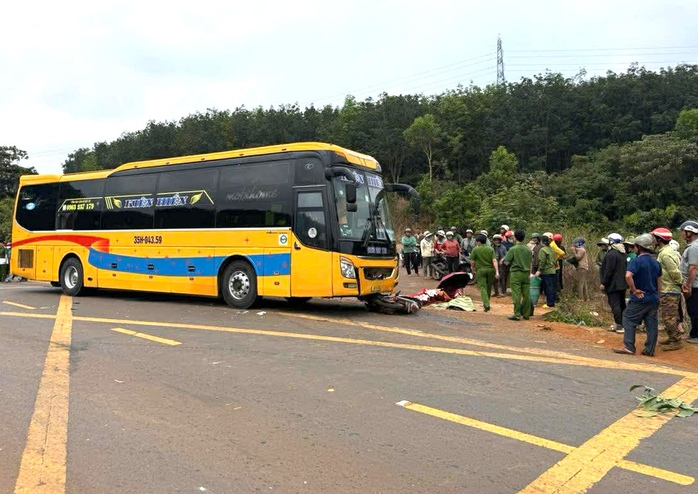 Người phụ nữ điều khiển xe máy băng qua đường thì bị xe khách tông khiến nạn nhân tử vong tại chỗ.