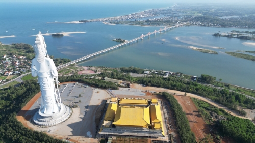 Cận cảnh ngôi chùa có tượng Quan Âm cao nhất Đông Nam Á ở Quảng Ngãi, từ đây có thể nhìn thấy cả đảo Lý Sơn Dù chưa hoàn thiện, tượng Phật Quan Âm cao 125m trên đỉnh núi Thiên Mã (Quảng Ngãi) vẫn thu hút đông đảo người dân và du khách đến tham quan, chiêm bái. Từ độ cao này, vào những ngày trời quang, có thể nhìn thấy đảo Lý Sơn phía xa giữa biển.