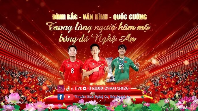 Trở về nước sau thành tích ấn tượng tại giải bóng đá U23 châu Á, bên cạnh sự chào đón nồng nhiệt của người hâm mộ cả nước và người dân quê nhà, 3 cầu thủ Nguyễn Đình Bắc, Cao Văn Bình và Nguyễn Thái Quốc Cường cùng gia đình tiếp tục vinh dự được UBND tỉnh Nghệ An tổ chức gặp mặt, giao lưu cùng người hâm mộ.