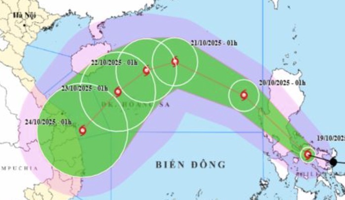 Dự báo chiều tối 19-10, bão Fengshen tiến vào Biển Đông, trở thành cơn bão số 12 trong năm.