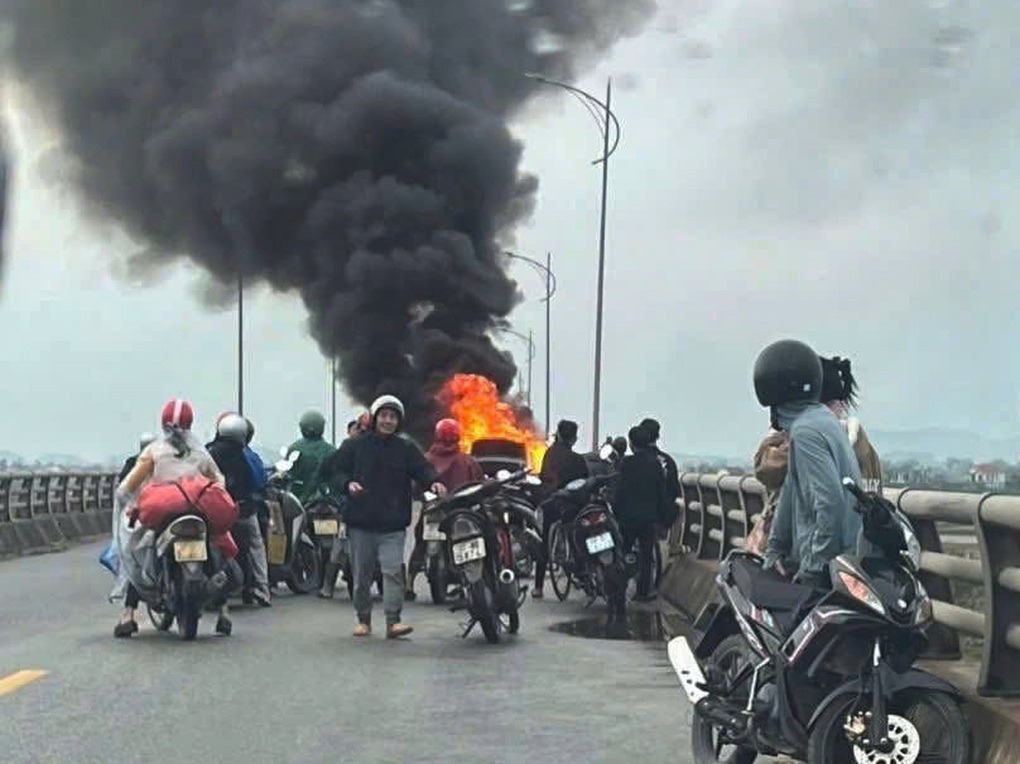 Nghệ An: Xe ô tô 5 chỗ bất ngờ bốc c.h.á.y trên cầu Yên Xuân