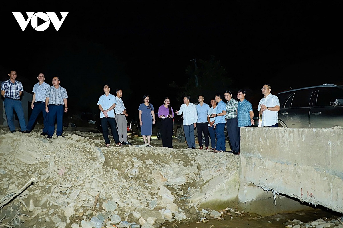 Ngay trong đêm, tại xã biên giới Mường Típ, nơi từng hứng chịu lũ quét và sạt lở đất nghiêm trọng do ảnh hưởng của bão số 10. ông Lê Hồng Vinh đã trực tiếp khảo sát vị trí dự kiến tái định cư mới cho 18 hộ dân tại khu vực Đồn Biên phòng cũ, nằm dọc tuyến Tỉnh lộ 543D, cách khu dân cư hiện tại khoảng 2,5 km. Đây là khu vực có mặt bằng tương đối bằng phẳng, thuận lợi cho việc xây dựng hạ tầng sinh hoạt thiết yếu.