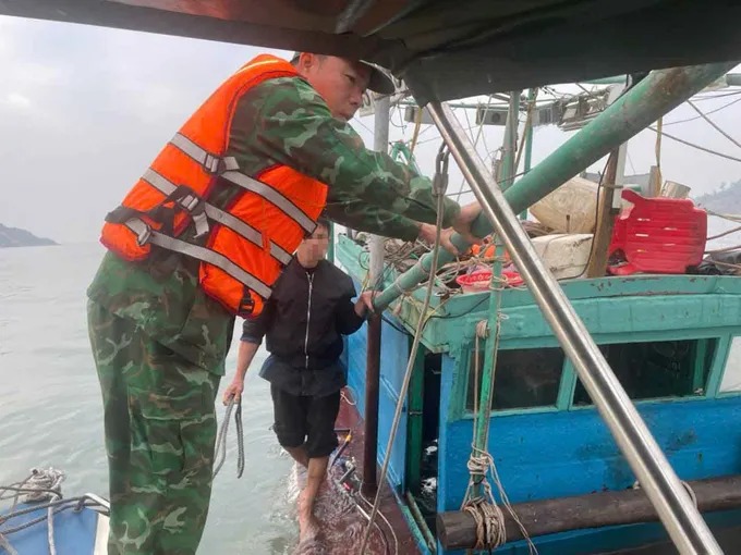 Nhận tin báo, Đồn Biên phòng Quỳnh Thuận nhanh chóng huy động cán bộ, chiến sĩ cùng phương tiện tiếp cận hiện trường, hỗ trợ đưa ngư dân và một số thiết bị giá trị trên tàu gặp nạn vào bờ, đảm bảo an toàn.