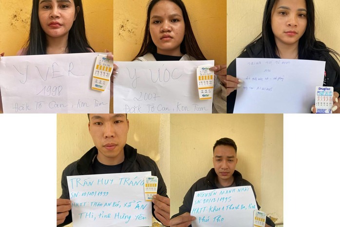 Tại đây, lực lượng công an phát hiện tại nóc nhà vệ sinh tầng 4 có 5 đối tượng (gồm 2 nam, 3 nữ). Các đối tượng đều khai nhận từ khoảng 1 giờ 30 đến 3 giờ ngày 15-12 đã cùng nhau sử dụng trái phép chất ma túy tại phòng 4 tầng 2 của quán karaoke Thành Tuyến. Khi lực lượng công an vào kiểm tra, các đối tượng bỏ trốn lên nóc nhà vệ sinh tầng 4 của cơ sở. Tiến hành test nhanh ma túy trong mẫu nước tiểu, cả 5 đối tượng đều dương tính với ma túy.