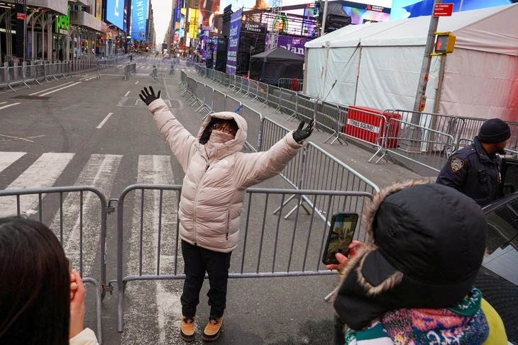 Mọi người tập trung tại lối vào an ninh ở Quảng trường Thời đại trước sự kiện đón năm mới tại quận Manhattan, thành phố New York, Mỹ ngày 31-12 - Ảnh: REUTERS |
