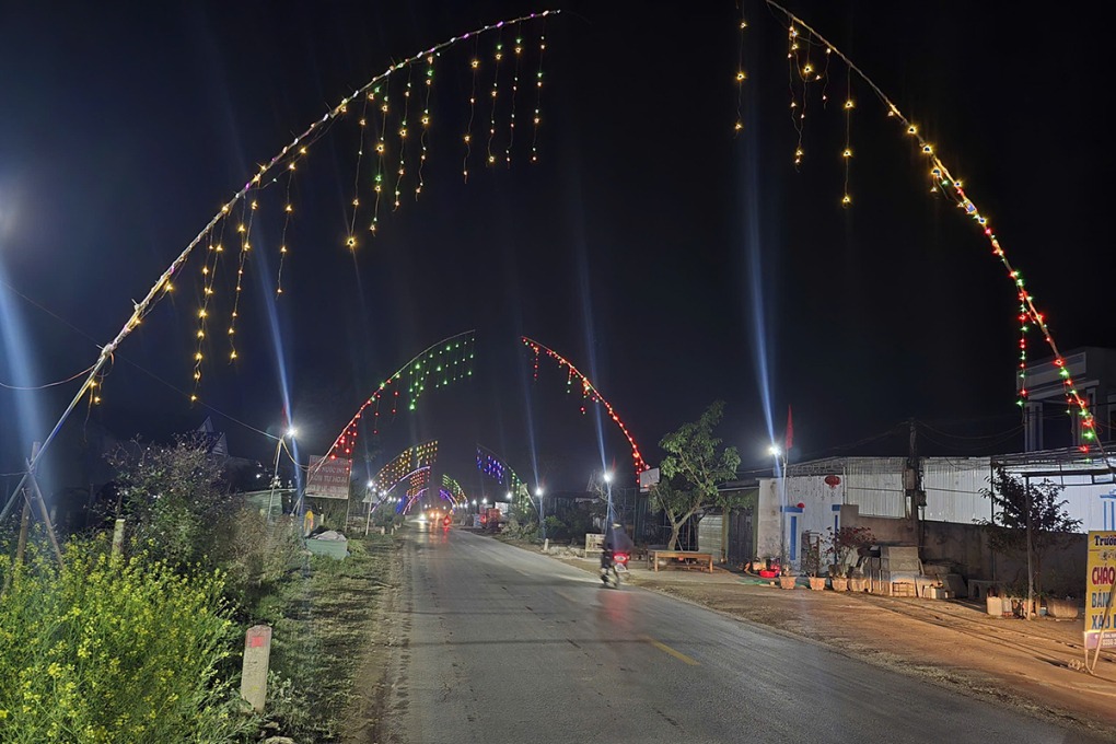 Cây nêu được người dân dựng hai bên đường tại các xã ở Nghệ An mỗi dịp Tết Nguyên đán. Ảnh: Đức Hùng |