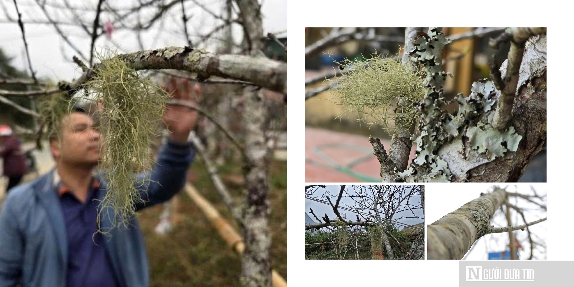 "Đào càng ở cao, nhiều sương mù, thân càng phủ rêu dày, thế càng cổ kính thì càng có giá", anh Hoàng nói, tay vuốt nhẹ lớp rêu xanh mướt trên một cành đào vừa hạ sơn.