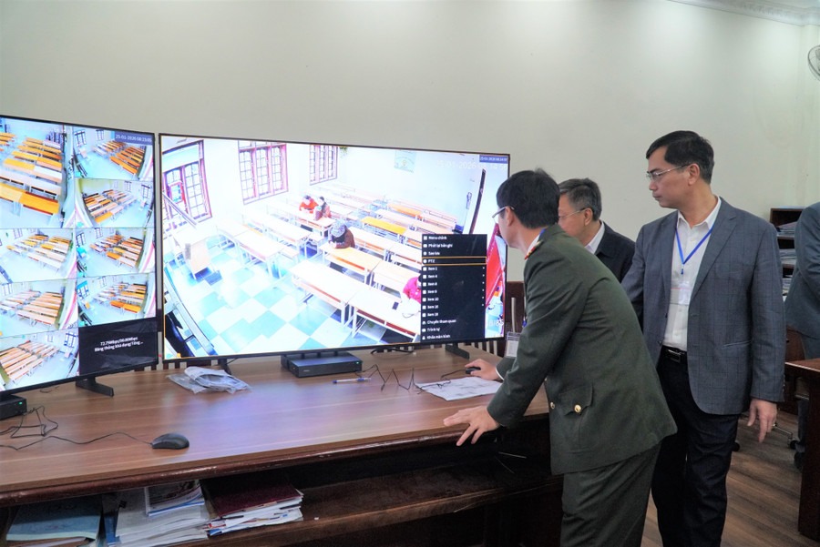 Các phòng thi đều có camera giám sát, kết nối với trung tâm điều hành để theo dõi. Ảnh: Hồ Lài |