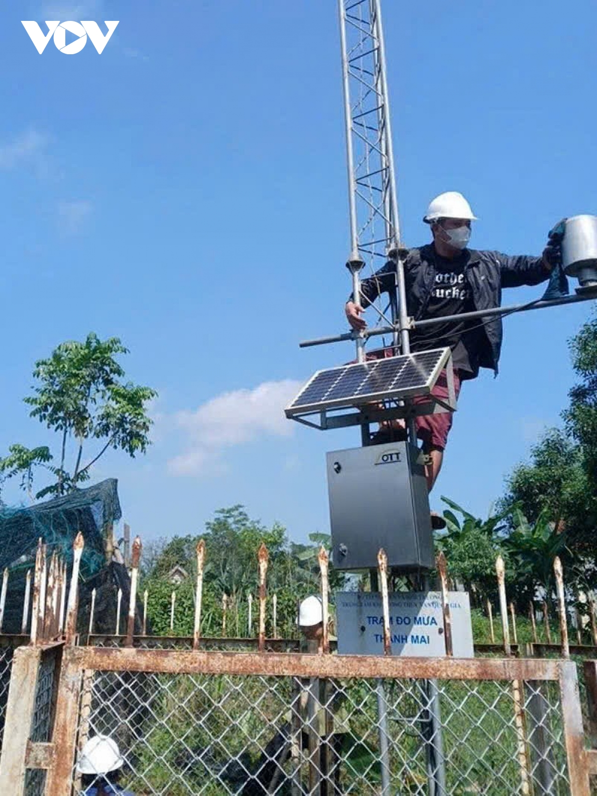 Quan trắc viên, Đài Khí tượng Thủy văn tỉnh Nghệ An bảo dưỡng máy móc. (Ảnh: Bá Thăng) |