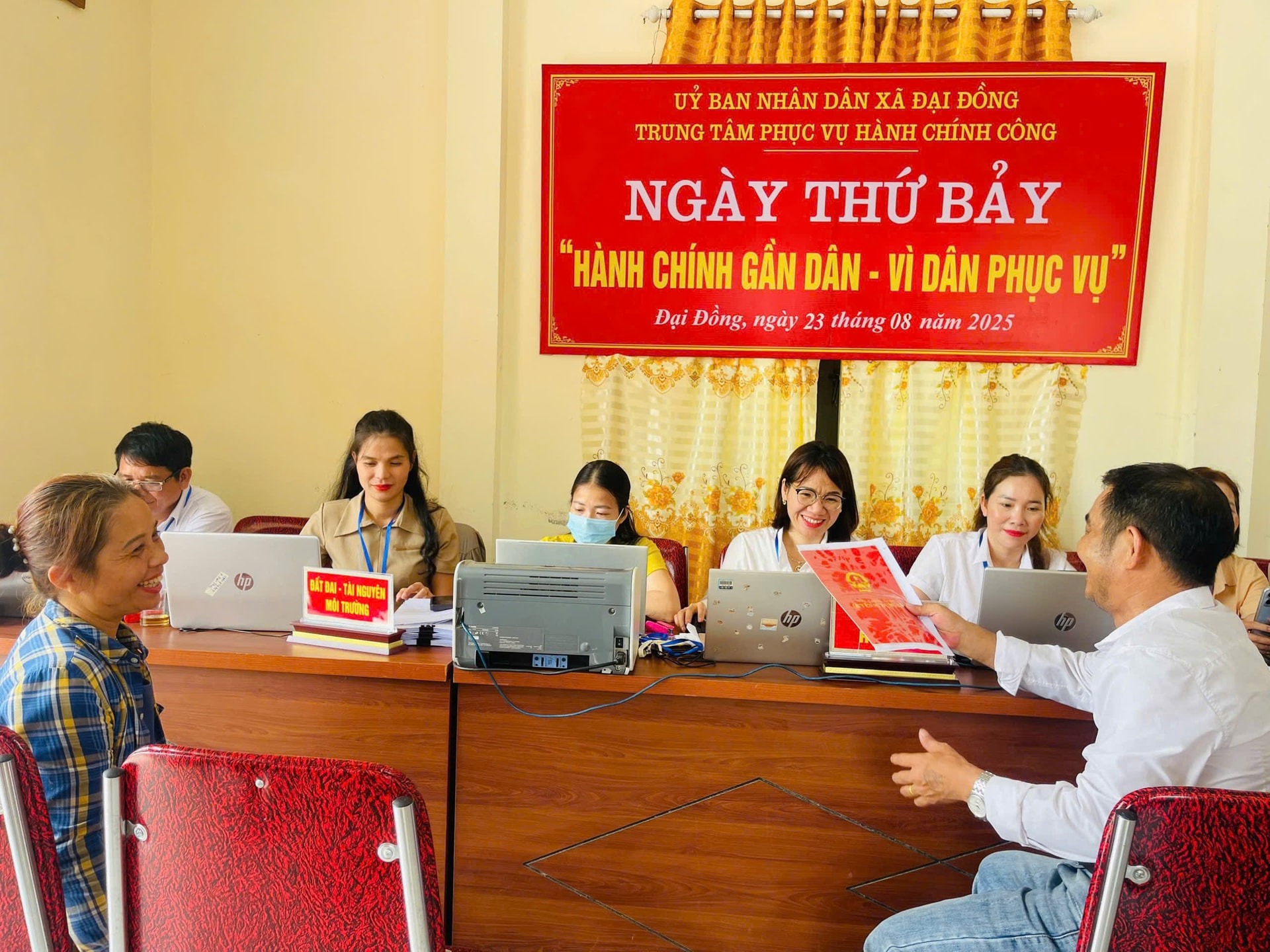 Trung tâm Phục vụ hành chính công xã Đại Đồng làm việc thường xuyên vào ngày thứ 7 tuần thứ 2 và tuần thứ 4 hàng tháng, mỗi tuần tổ chức hoạt động làm việc trực tiếp tại xã Đại Đồng cũ.