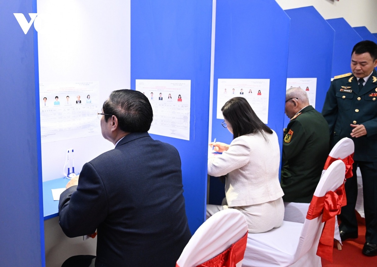 Sau khi tìm hiểu danh sách các ứng cử viên đại biểu Quốc hội khóa XVI và đại biểu HĐND các cấp nhiệm kỳ 2026-2031, Thủ tướng Phạm Minh Chính và phu nhân cùng các cử tri là lãnh đạo các cơ quan Trung ương và thành phố Hà Nội, các cử tri trẻ tuổi nhất, cao tuổi nhất, cử tri đại diện các tầng lớp nhân dân và cử tri trong khu vực bỏ phiếu đã tiến hành bỏ phiếu bầu cử, thực hiện quyền công dân của mình theo đúng quy định.
