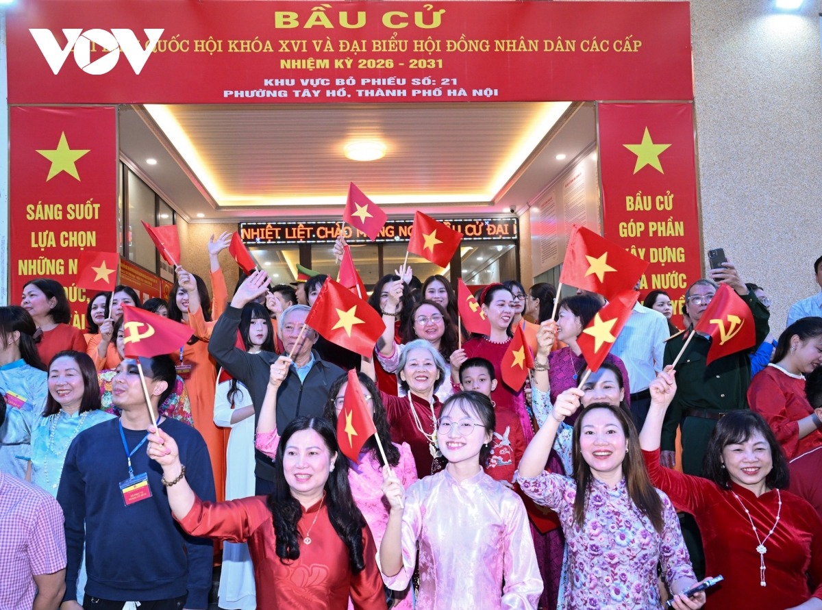 Ngay từ sáng sớm nay, Khu vực bỏ phiếu số 21, Phường Tây Hồ, Thành phố Hà Nội đã rộn ràng trong không khí của ngày hội lớn. Cờ đỏ, băng rôn, khẩu hiệu được trang hoàng trang trọng. Đông đảo cử tri đã có mặt từ rất sớm để thực hiện quyền và nghĩa vụ công dân của mình.
