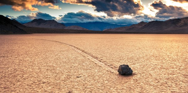 Mỗi hòn đá đều có lộ trình riêng, có hòn đi thẳng, có hòn lại đi theo hình lượn sóng hay rẽ trái, phải. Có những hòn đá có khối lượng bằng nhau, hình dáng cũng giống nhau nhưng lại di chuyển những quãng đường khác nhau. "Những hòn đá này di chuyển bằng cách nào" luôn là câu hỏi mà rất nhiều người, từ du khách tới các nhà khoa học đã đặt ra. Hơn một thế kỷ, đến nay vẫn chưa có câu trả lời chính xác. Ảnh: Real Unexplained Mysteries.