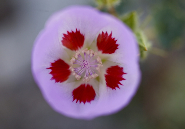 Bông hoa Desert Five-spot trong thung lũng Chết. Đúng như tên gọi của nó, loài hoa đặc biệt này có 5 chấm màu đỏ trên mỗi cánh hoa và sinh sôi ở vùng sa mạc. Ảnh: LA Times. |