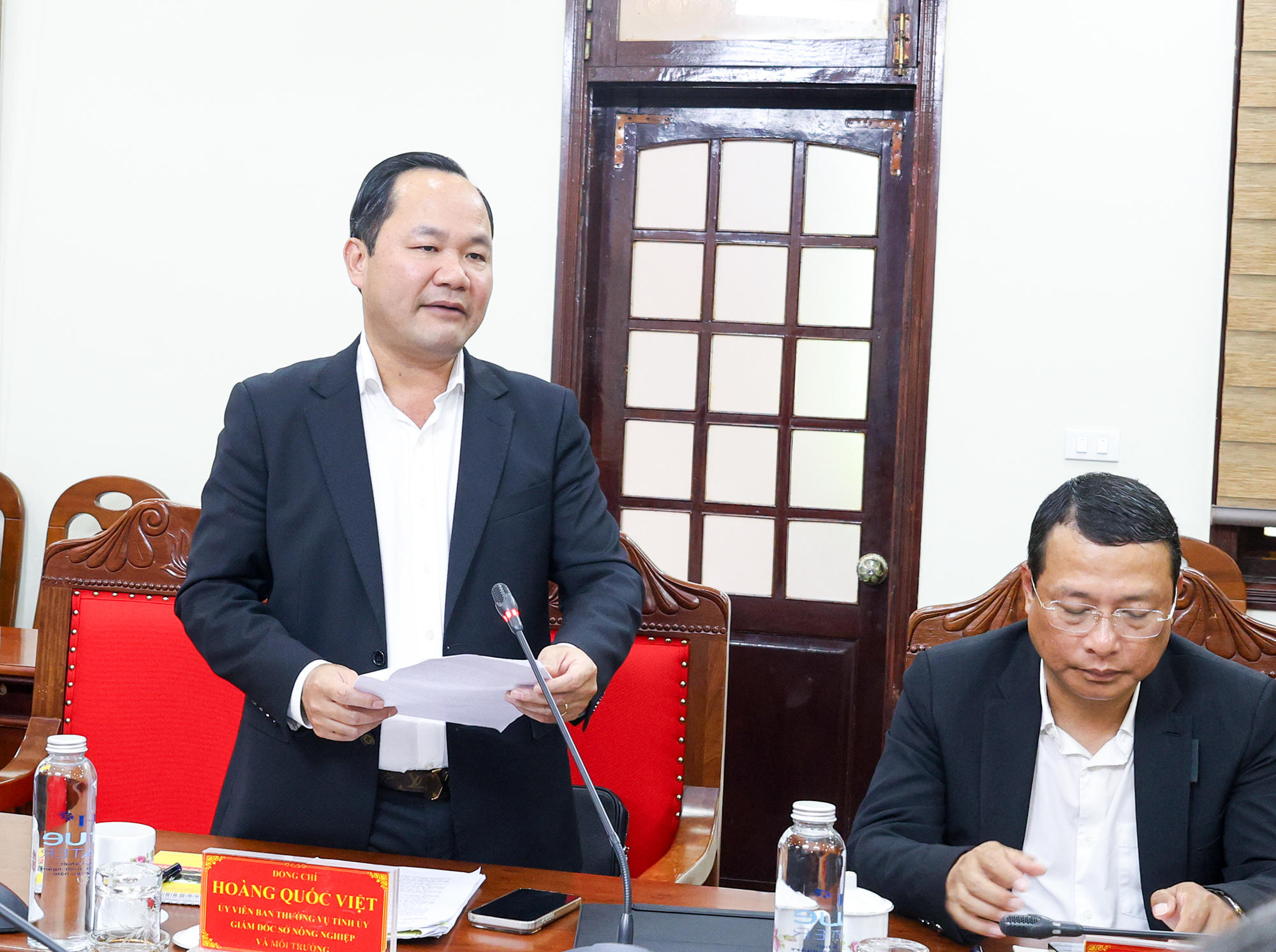 Giám đốc Sở Nông nghiệp và Môi trường Hoàng Quốc Việt báo cáo việc cấp phép thăm dò, khai thác các mỏ khoáng sản phục vụ Dự án Xây dựng và kinh doanh Cảng nước sâu Cửa Lò |