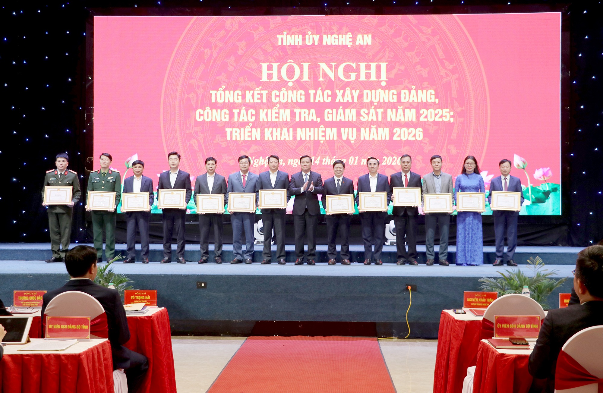 Kết thúc năm 2025, có 27 Đảng bộ hoàn thành xuất sắc nhiệm vụ; 109 Đảng bộ trực thuộc Tỉnh ủy hoàn thành tốt nhiệm vụ. Ban Thường vụ Tỉnh ủy đã tặng Bằng khen cho 27 Đảng bộ trực thuộc Tỉnh ủy hoàn thành xuất sắc nhiệm vụ; tặng Cờ cho 02 Đảng bộ hoàn thành xuất sắc nhiệm vụ tiêu biểu 05 năm liền; tặng Bằng khen cho 21 chi bộ hoàn thành xuất sắc nhiệm vụ tiêu biểu 05 năm liền; tặng Bằng khen cho 151 đảng viên hoàn thành xuất nhiệm vụ tiêu biểu 05 năm liền.