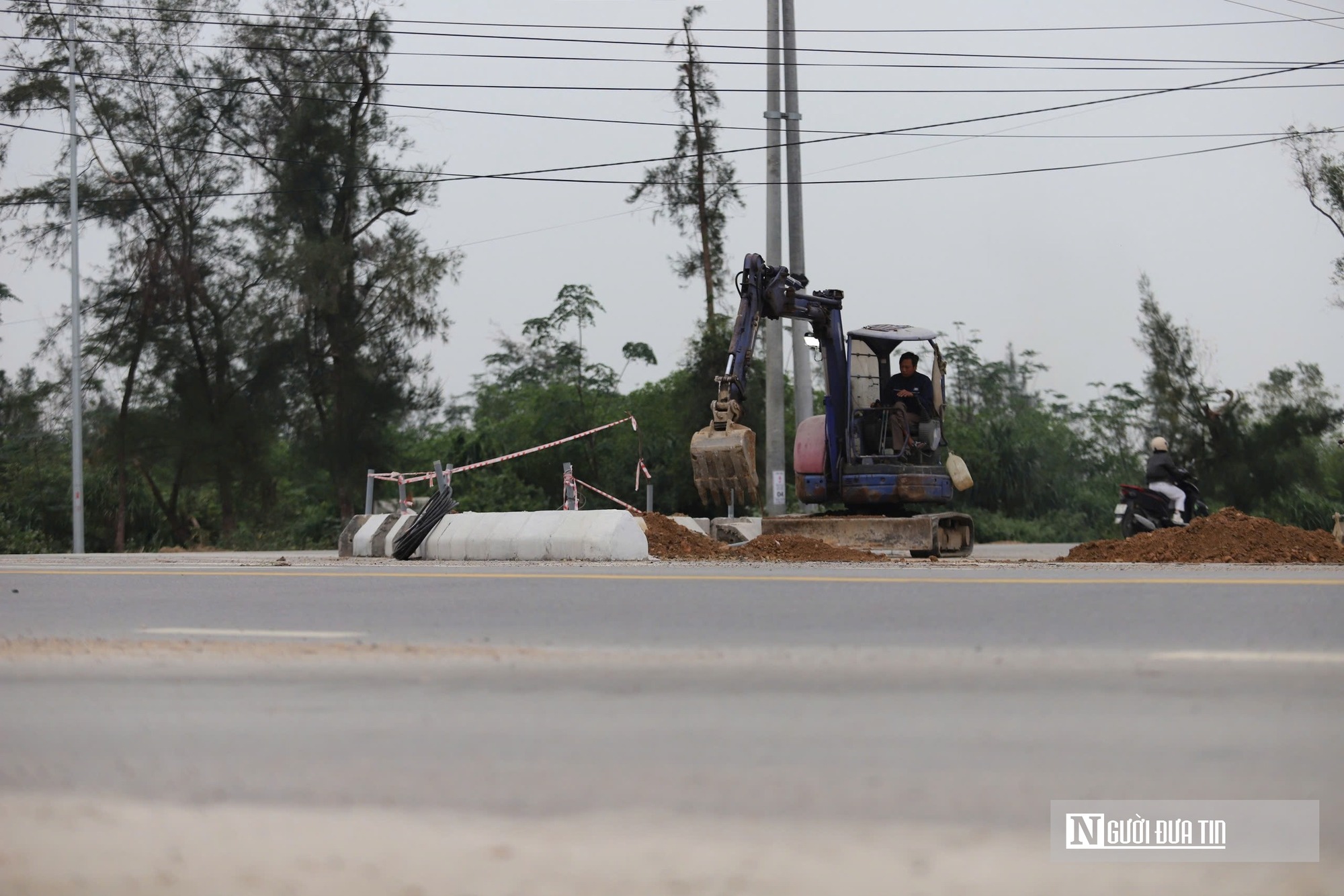 Công nhân đang hoàn thành một số hạng mục đường kết nối dân sinh và hệ thống an toàn giao thông. |