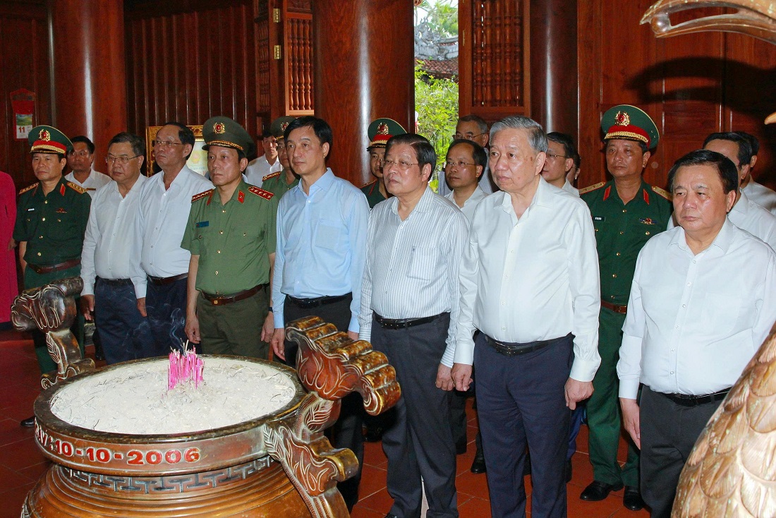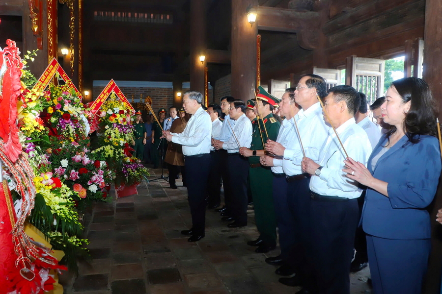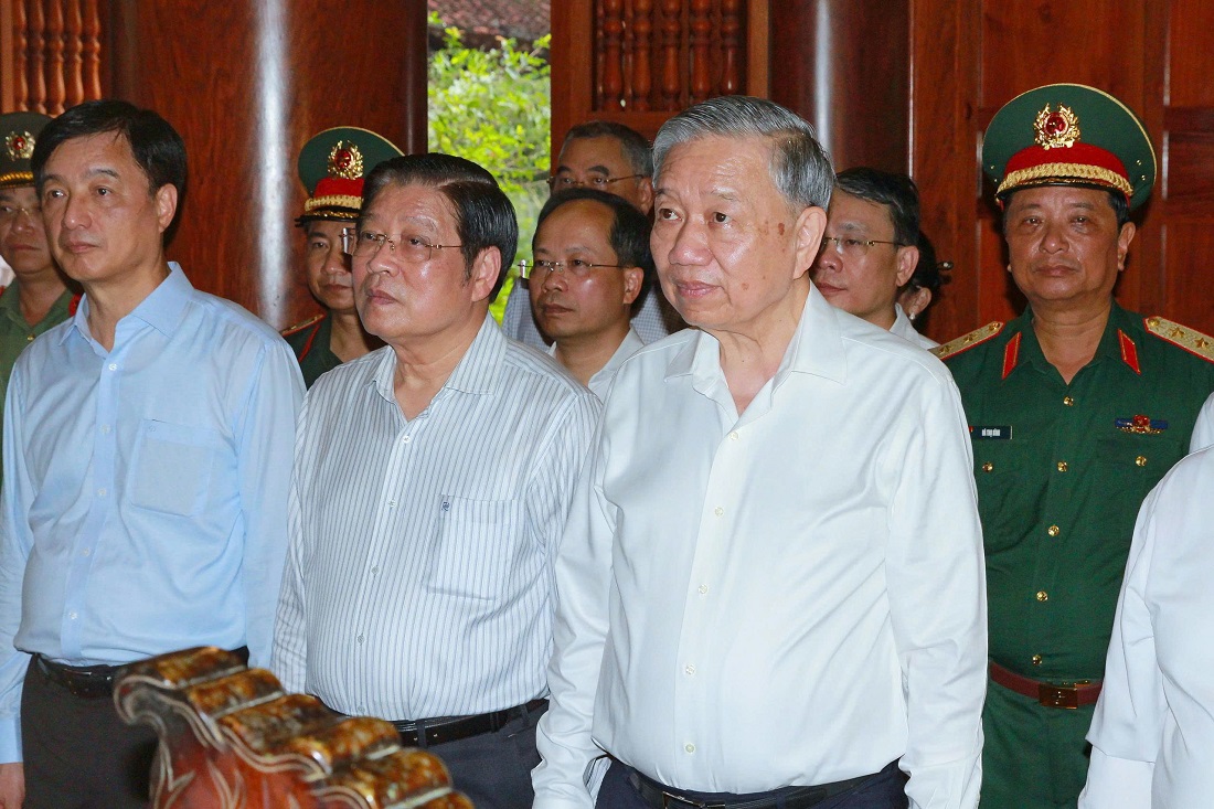 Tổng Bí thư Tô Lâm và đoàn đại biểu dâng hoa, dâng hương tại đền Chung Sơn - đền thờ gia tiên Chủ tịch Hồ Chí Minh |