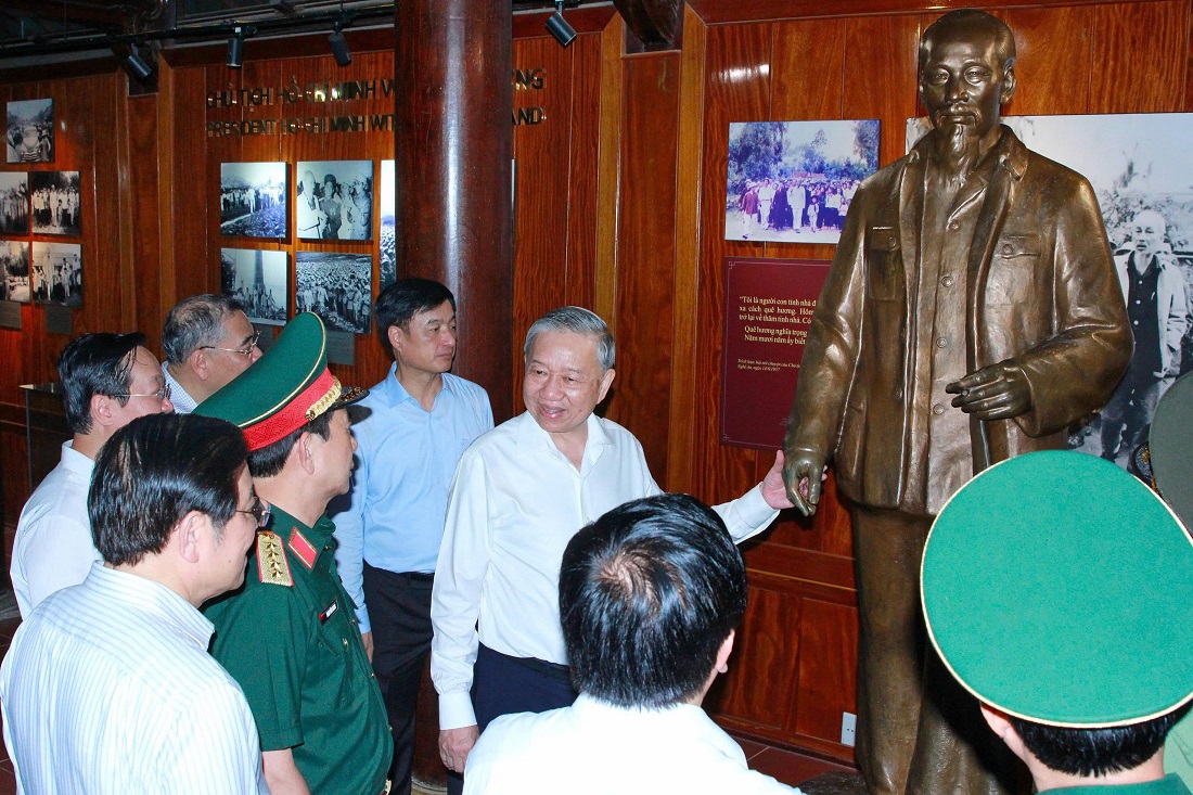 Tổng Bí thư Tô Lâm và các đại biểu thăm nhà trưng bày tại Khu di tích Quốc gia đặc biệt Kim Liên |