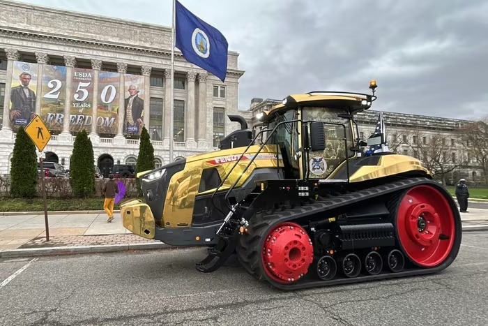 Ra mắt tại sự kiện Great American Farmers Market 2025, cỗ máy này thường xuất hiện tại các sự kiện lớn của AGCO nhằm gửi đến thông điệp ủng hộ người nông dân Mỹ, vốn được thể hiện ngay trên kính khoang lái. |