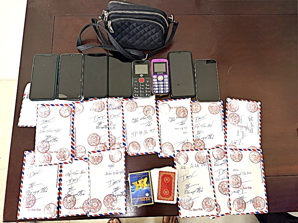 Tại hiện trường, lực lượng chức năng thu giữ 2 bộ bài tú lơ khơ, 8 điện thoại di động, 4 xe máy và số tiền 86.800.000 đồng.