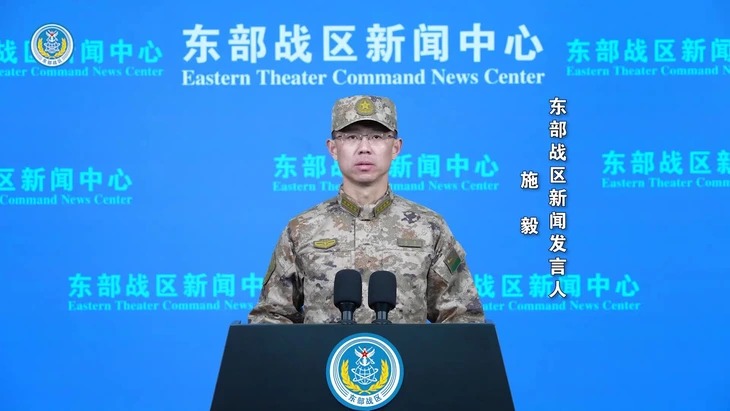 Đại tá Thi Nghị (Shi Yi), người phát ngôn Chiến khu Đông bộ thuộc Quân Giải phóng nhân dân Trung Quốc, thông báo về cuộc tập trận - Ảnh: Military.cnr.cn |