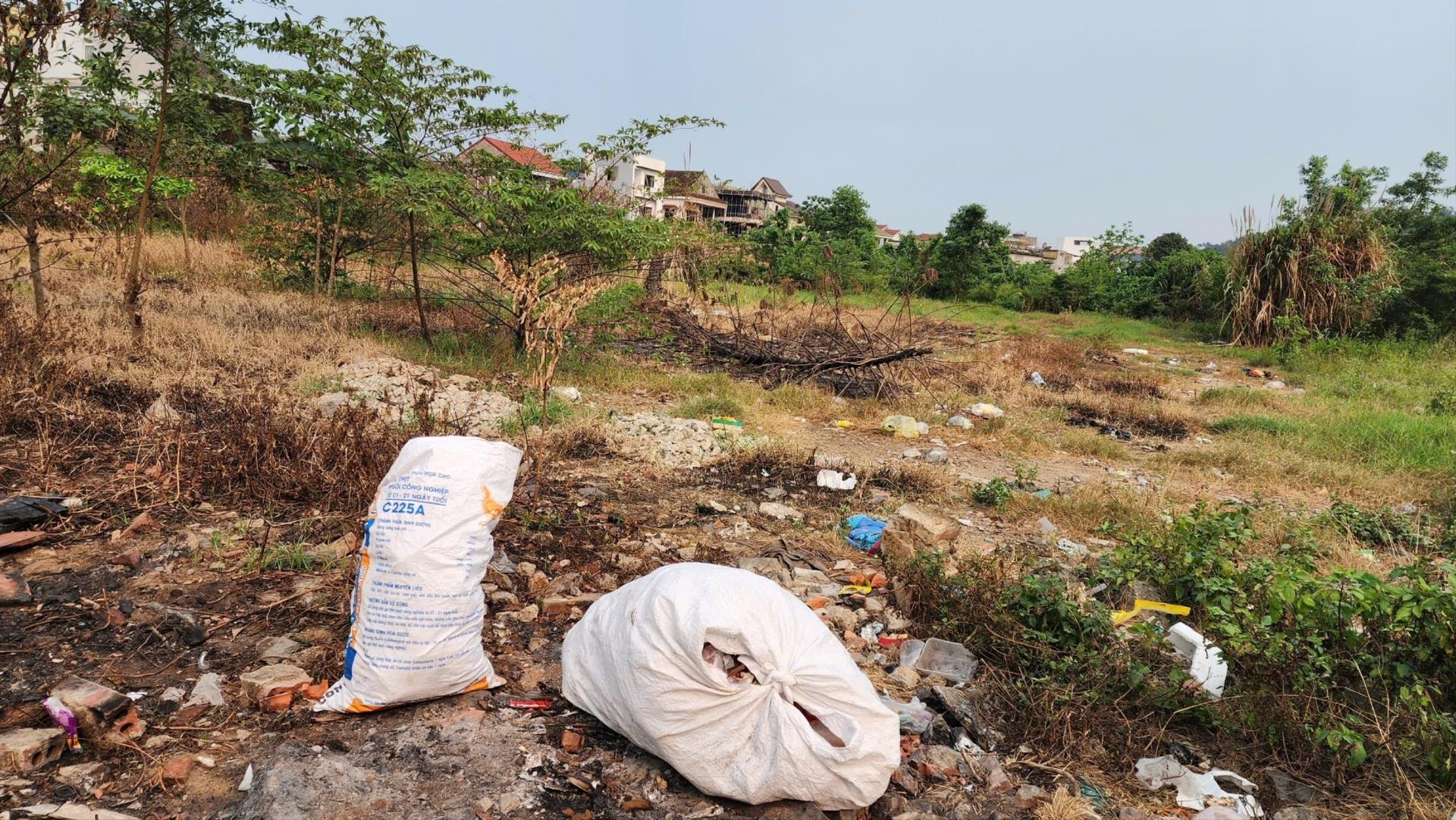 Bên trong khu đất, cây cỏ mọc um tùm, xen lẫn nhiều loại rác thải sinh hoạt và vật liệu xây dựng. Không ít khu vực rác tồn đọng lâu ngày, chất thành đống lớn, tiềm ẩn nguy cơ ô nhiễm môi trường và mất vệ sinh đô thị.