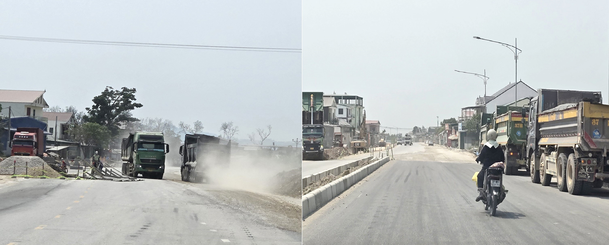 Thậm chí, tại những vị trí ít bị ảnh hưởng trong công tác giải phóng mặt bằng, chủ yếu đi giữa cánh đồng nhưng quá trình thi công vẫn đang rất ì ạch, lộ rõ độ vênh giữa nền đường cũ và đường ở hai bên trái và phải tuyến, dù không ảnh hưởng đến mặt bằng và hạ tầng kỹ thuật.