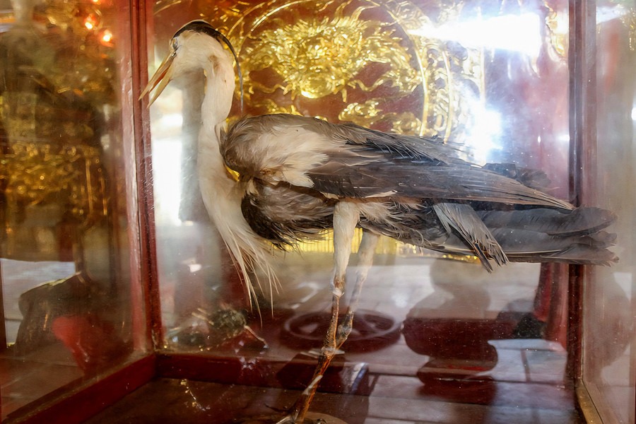 Tiêu bản chim hạc trưng bày tại đền Cuông. |