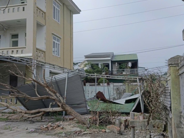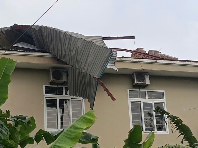 Cây xanh, mái tôn bị hư hỏng bên trong trụ sở |