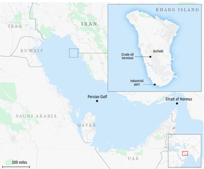 Các cơ sở dầu mỏ tại Kharg hiện có công suất xử lý 7 triệu thùng dầu mỗi ngày và khoảng 90% lượng dầu thô xuất khẩu của Iran đi qua hòn đảo, phần lớn đưa sang các thị trường ở châu Á.