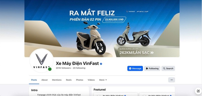 Tại Việt Nam, VinFast đang vận hành 2 trang fanpage trên nền tảng mạng xã hội là fanpage ô tô: https://www.facebook.com/VinFastAuto.Official và fanpage xe máy điện: https://www.facebook.com/Official.XeMayDienVinFast.