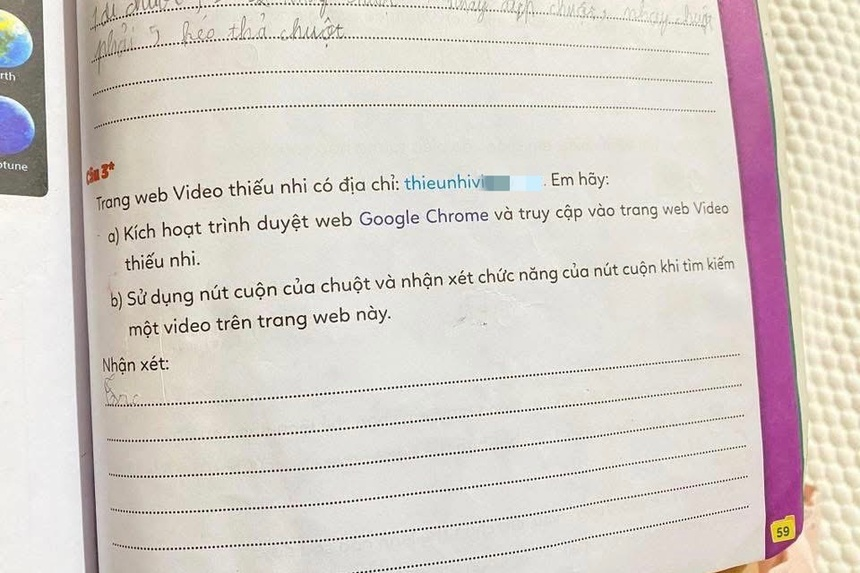 Mới đây, một phụ huynh đã phản ánh về việc vở bài tập môn Tin học lớp 3 của Nhà xuất bản Đại học Huế có chứa nội dung độc hại.