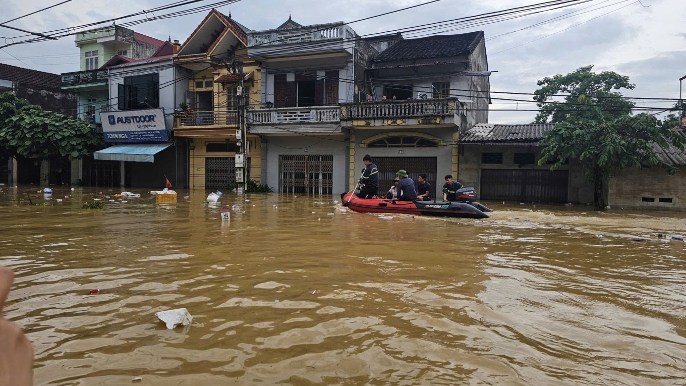 Tại xã Thất Khê, nước ngập hơn một mét, lực lượng cứu hộ phải di chuyển bằng xuồng. Ảnh: Cổng thông tin tỉnh Lạng Sơn |