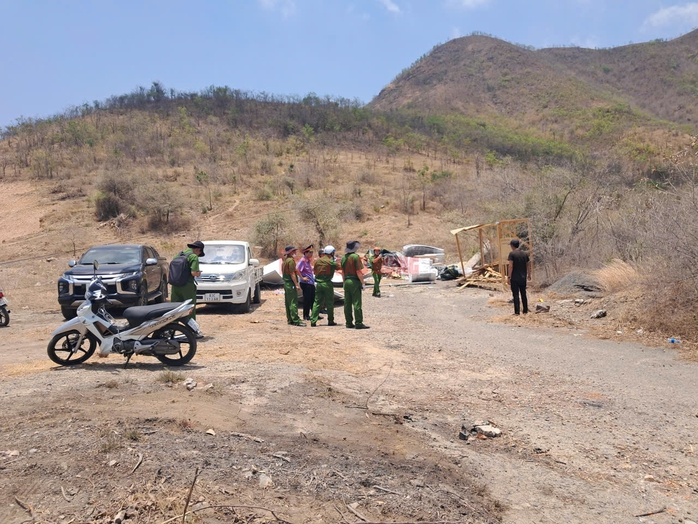 Cơ quan chức năng khám nghiệm hiện trường nơi điểm trung chuyển thiết bị nằm ở lưng chừng núi |