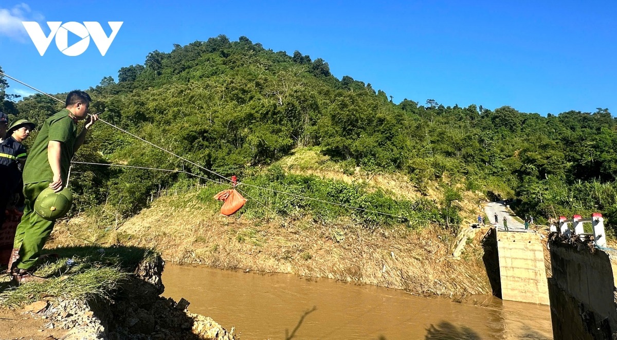Do ảnh hưởng của bão số 10, cầu Trung Thắng tại xã Yên Hòa (huyện Tương Dương cũ, Nghệ An) bị lũ cuống trôi, khiến hơn 1.400 người dân bị chia cắt, cô lập nhiều ngày nay. Chính quyền địa phương cùng các lực lượng công an, quân đội đã phải dùng ròng rọc tời nhu yếu phẩm qua sông cứu trợ người dân.