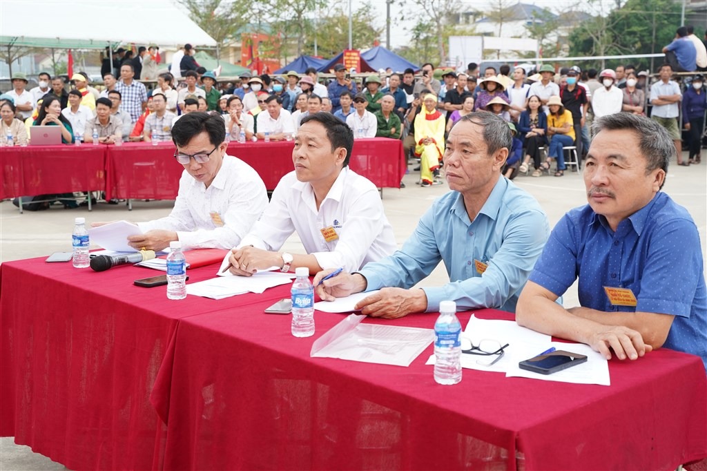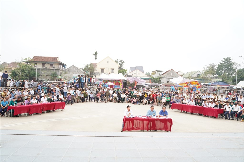 Đông đảo quần chúng nhân dân tới xem và thưởng thức nghệ thuật đánh trống tế |