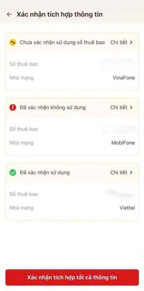 Thông tư 08/2026 vì vậy bổ sung thêm bước mới: Cho phép người dùng xác nhận các số điện thoại đứng tên mình trên VNeID theo hướng làm sạch dữ liệu theo tình thần Nghị quyết 57. Dữ liệu thuê bao từ các nhà mạng sẽ được đồng bộ lên ứng dụng. Khi nhận được thông báo, người dùng có thể tra cứu toàn bộ số điện thoại đăng ký bằng thông tin cá nhân của mình trên tất cả các mạng di động, từ đó xác nhận số đang sử dụng hoặc đánh dấu số không phải của mình.