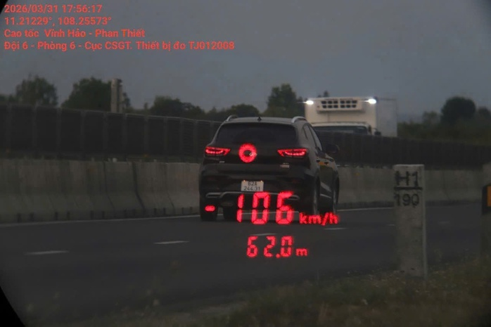 Sáng cùng ngày, lực lượng chức năng tuần tra trên tuyến cao tốc Vĩnh Hảo - Phan Thiết đã phát hiện một ô tô con biển số 62A-244.xx vi phạm chạy quá tốc độ và không có giấy chứng nhận đăng ký xe. Người điều khiển phương tiện là bà N.N.B.C. (sinh năm 1984, trú Lâm Đồng).