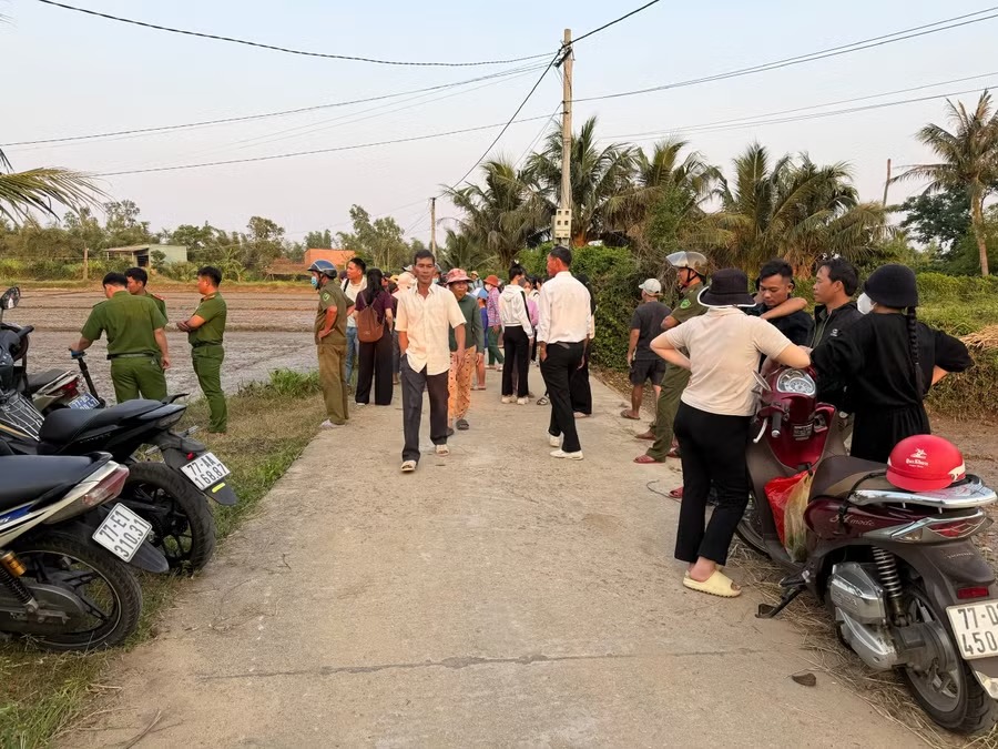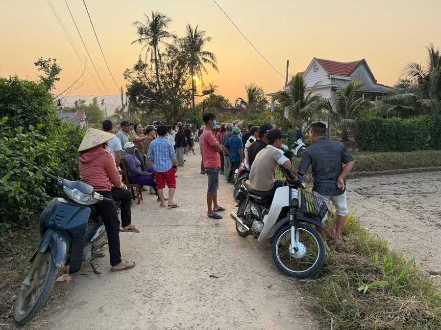 Người dân địa phương tại khu vực phía trước nhà nạn nhân. Ảnh: Nguyễn Chơn |