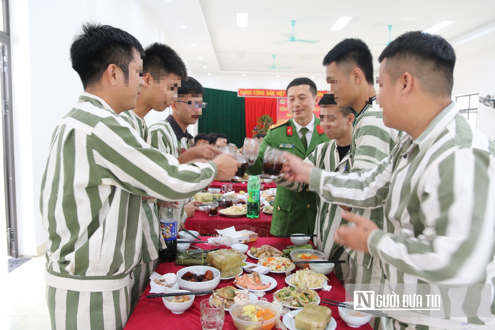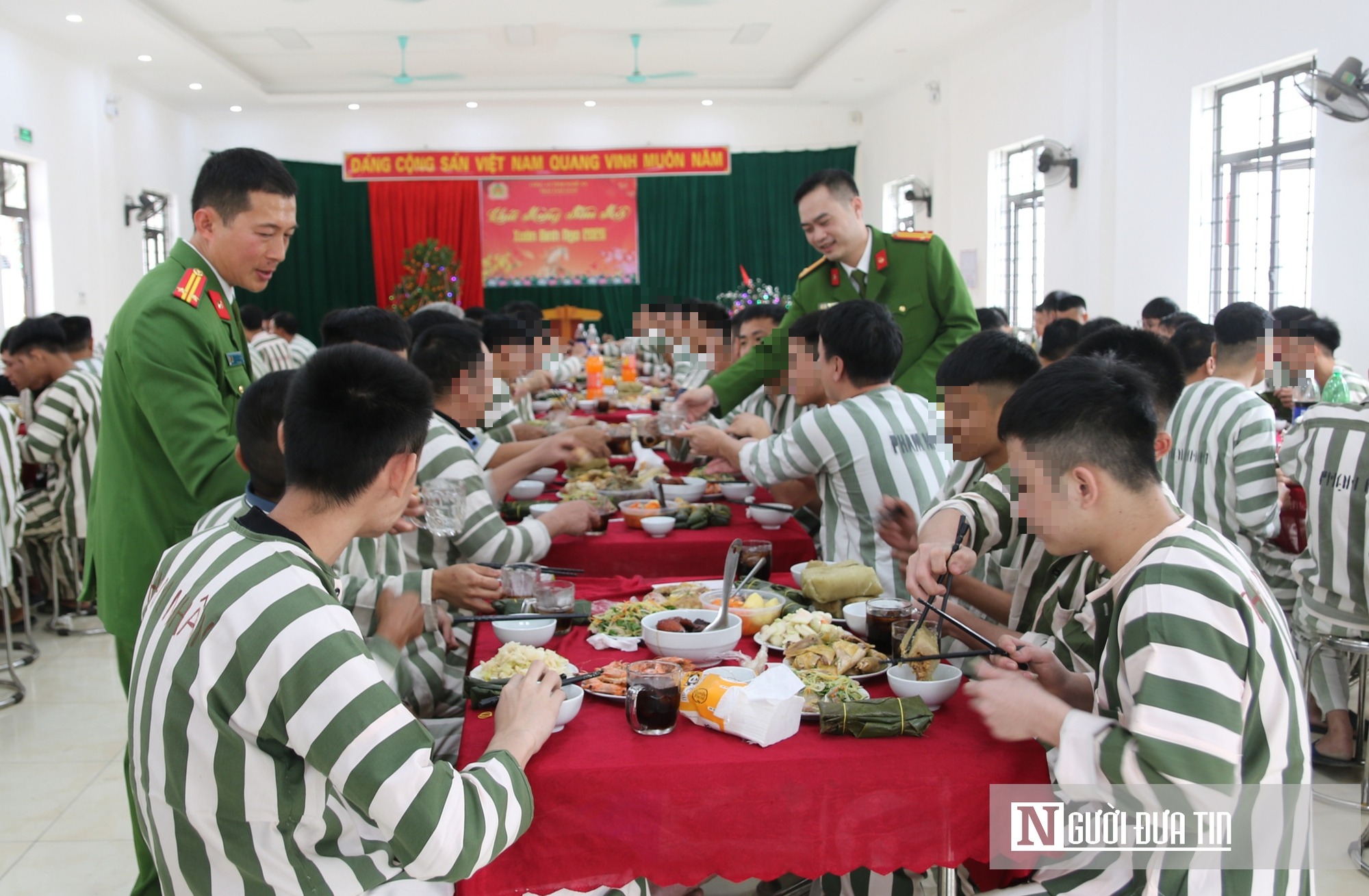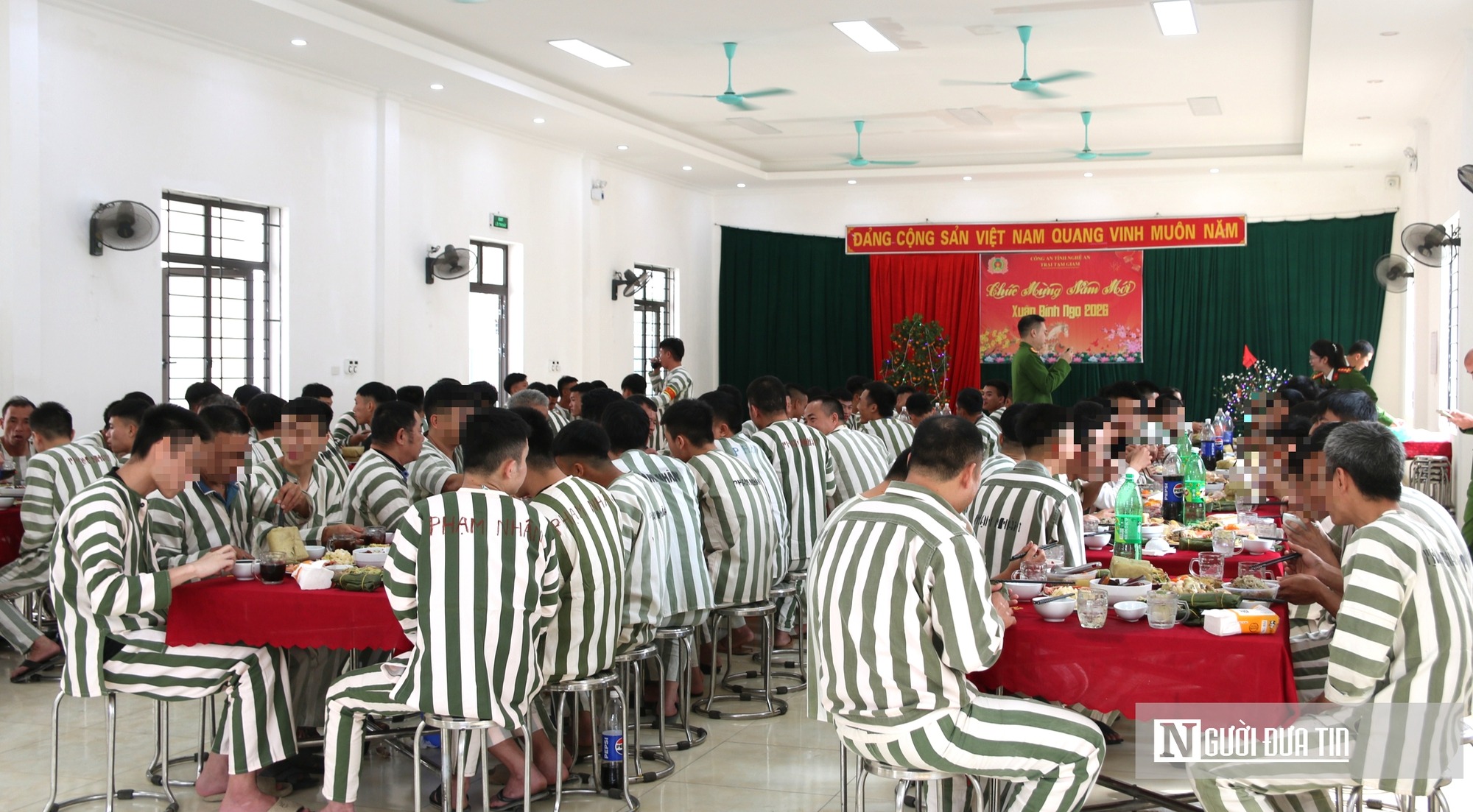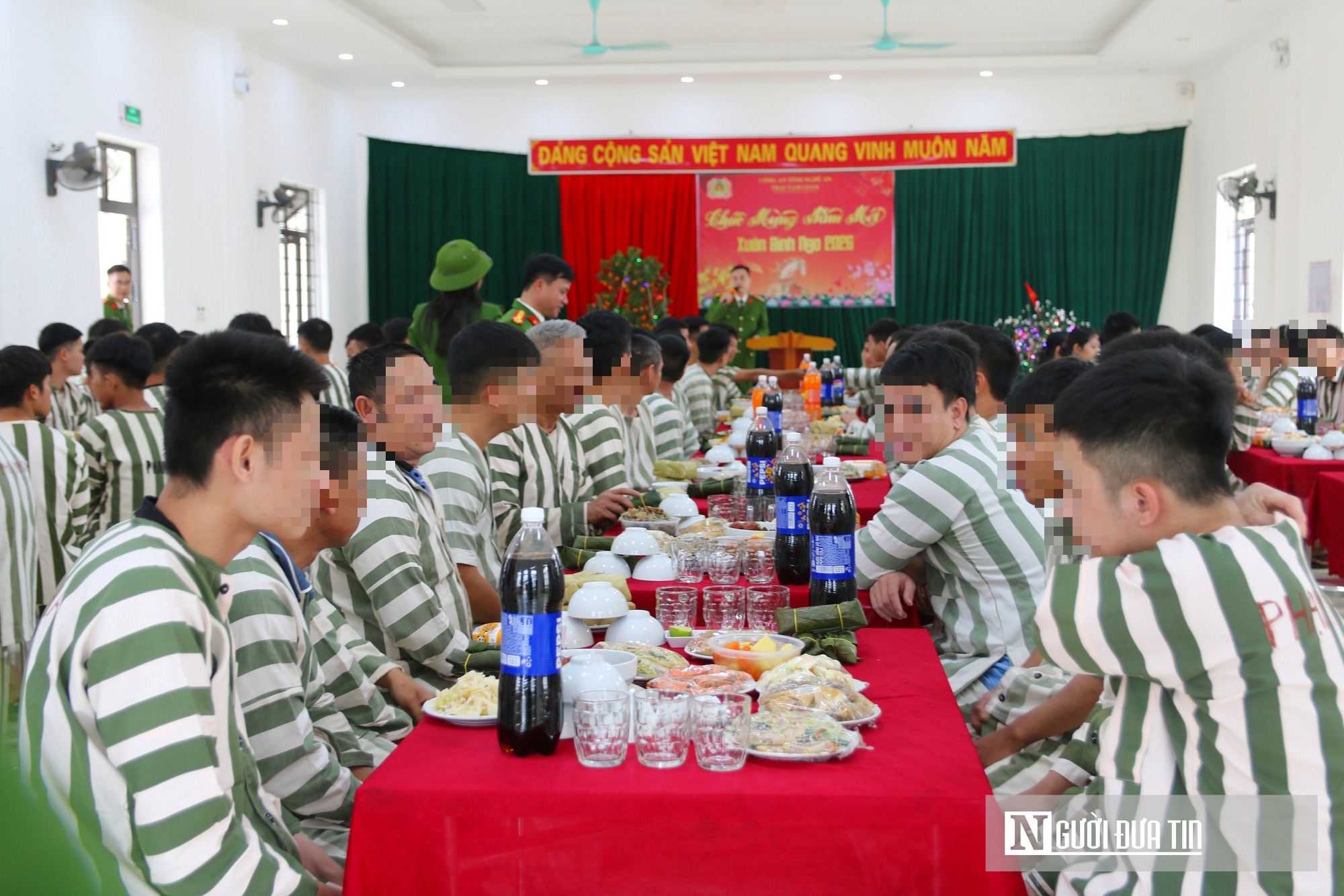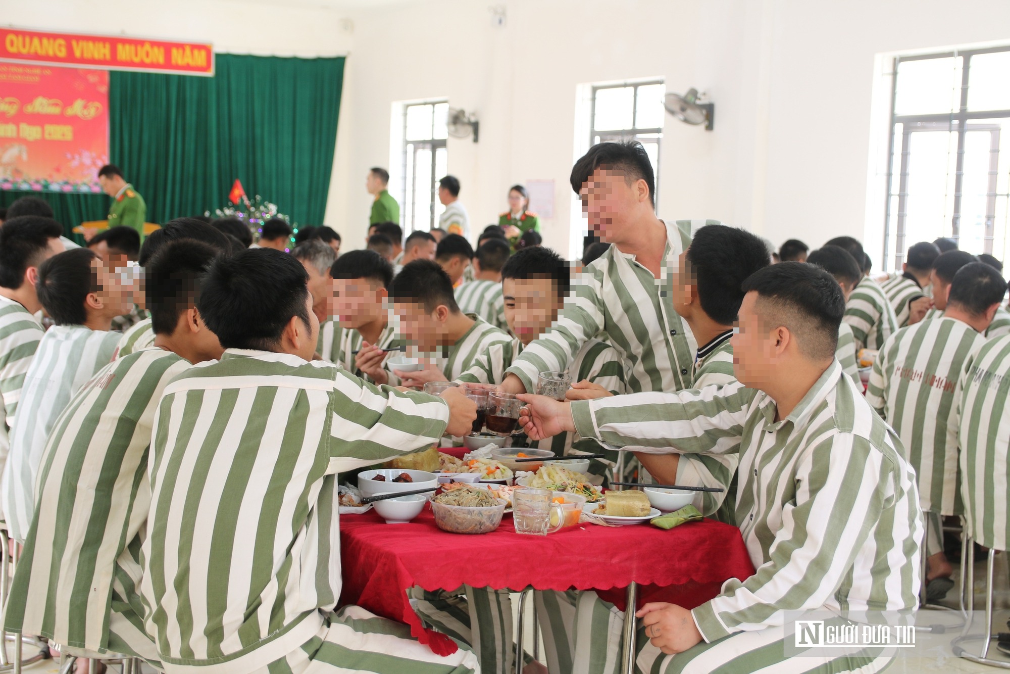 Ngày 12/2, tức 25 tháng Chạp, Trại tạm giam Công an tỉnh Nghệ An tổ chức bữa cơm tất niên dành tặng các phạm nhân đang thi hành án tại đây. Đây là hoạt động được triển khai hàng năm nhằm động viên các phạm nhân dịp Tết, đến Xuân về. Hiện, có 108 phạm nhân đang thi hành án tại trại tạm giam. |