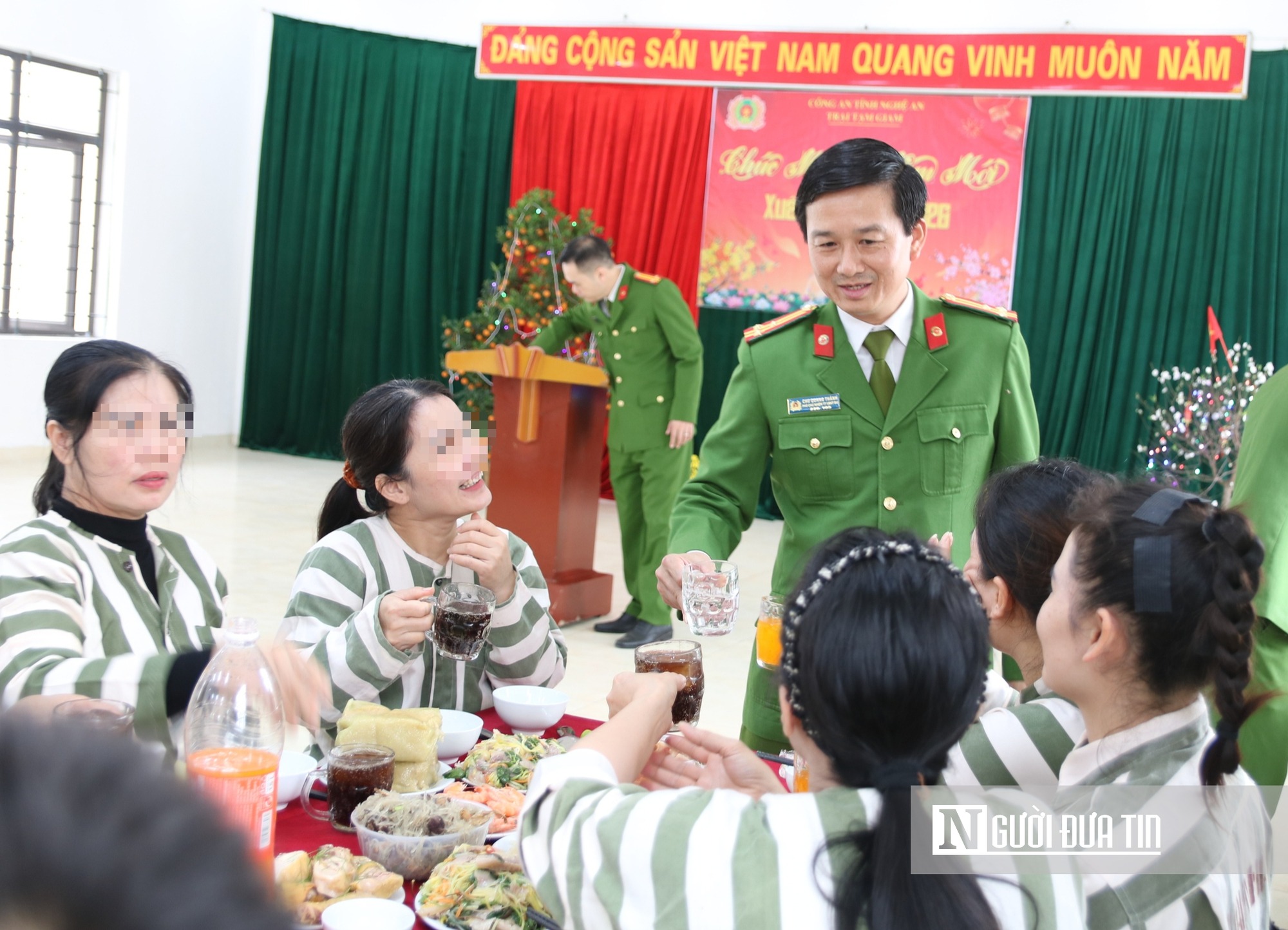 Tại bữa cơm tất niên, Thượng tá Chu Quang Thành, Giám thị Trại Tạm giam Công an tỉnh gửi lời chúc Tết đến các phạm nhân. Giám thị Trại Tạm giam cho biết, hơn 10 năm nay, Trại tạm giam Công an tỉnh Nghệ An duy trì tổ chức bữa cơm tất niên sớm cho anh chị em phạm nhân. Bữa cơm là tấm lòng của cán bộ quản giáo, động viên phạm nhân khích lệ các anh chị phạm nhân nỗ lực trong rèn luyện, lao động, cải tạo, chấp hành nội quy phòng giam để được hưởng chính sách khoan hồng của Đảng, Nhà nước, sớm trở về với gia đình và xã hội. |