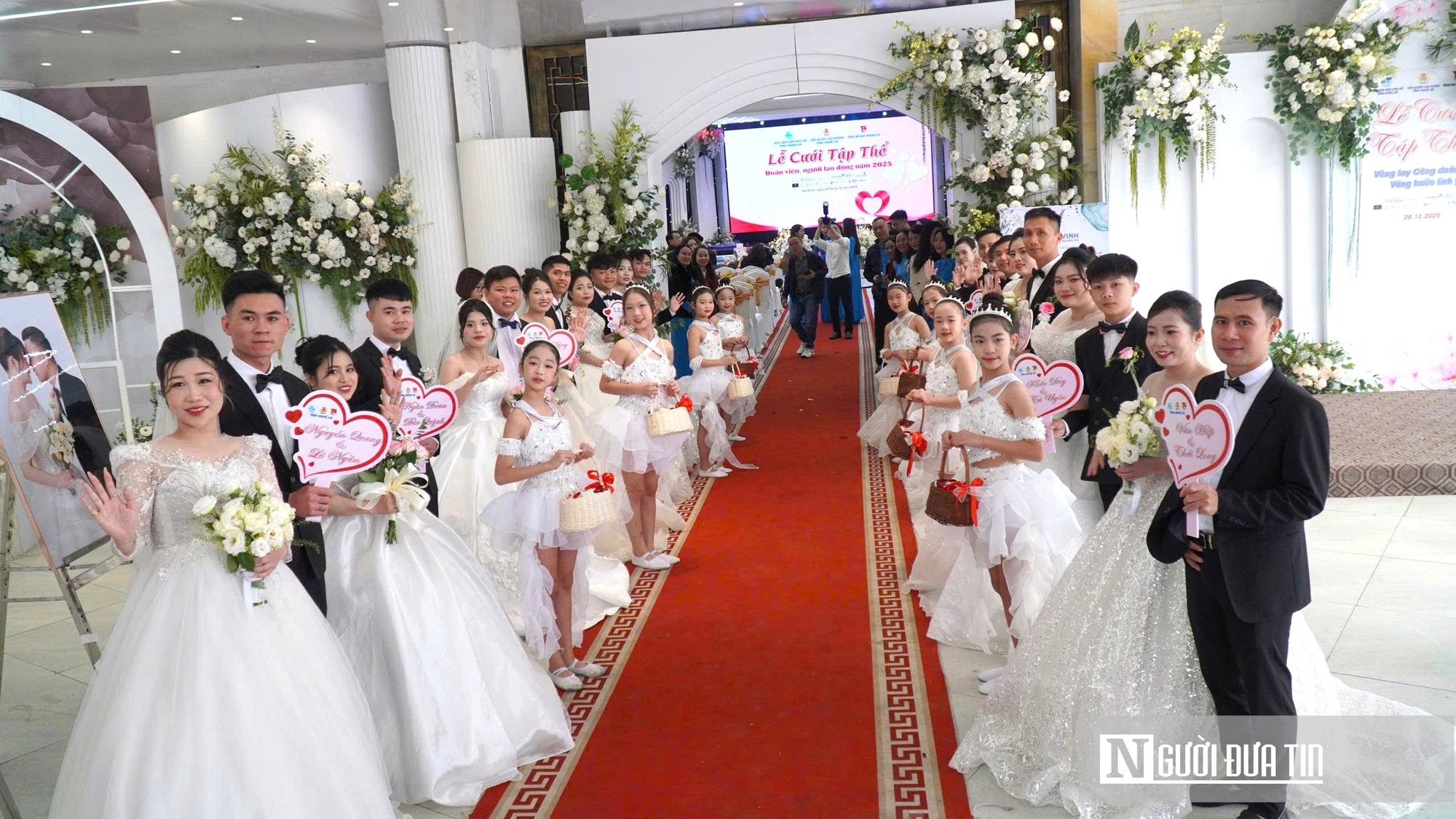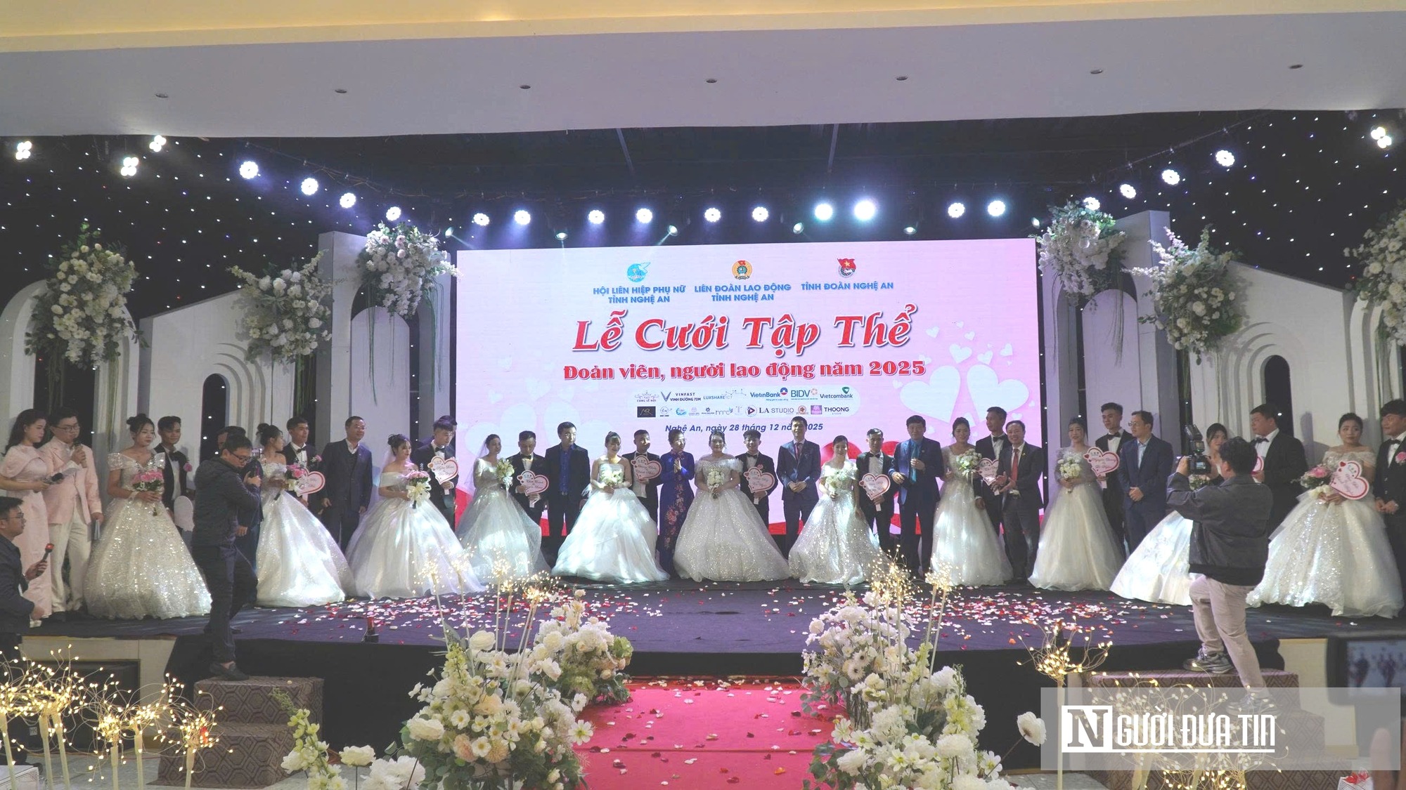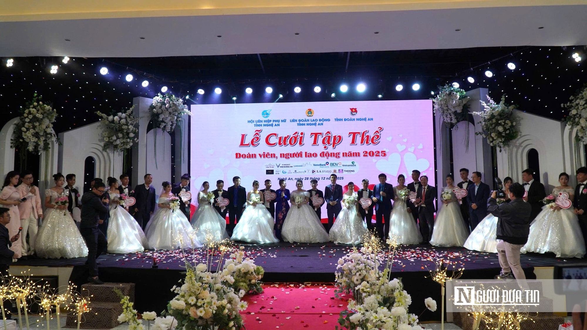 Ngày 28/12, tại trung tâm tiệc cưới Cung Lễ hội (phường Trường Vinh), Liên đoàn Lao động tỉnh Nghệ An phối hợp với Hội Liên hiệp Phụ nữ tỉnh, Tỉnh đoàn Nghệ An và các cơ quan, đơn vị đồng hành, tổ chức lễ cưới tập thể năm 2025 với chủ đề “Vòng tay Công đoàn - Vững bước tình yêu”. Tham dự buổi lễ có ông Ngọ Duy Hiểu - Phó Chủ tịch Tổng Liên đoàn Lao động Việt Nam; bà Võ Thị Minh Sinh - Phó Bí thư Tỉnh ủy, Trưởng Đoàn ĐBQH tỉnh, Chủ tịch Ủy ban MTTQ Việt Nam tỉnh Nghệ An, cùng đại diện lãnh đạo các sở, ban, ngành, tổ chức đoàn thể, doanh nghiệp, nhà tài trợ và gia đình, người thân của 11 cặp đôi cô dâu chú rể. |
